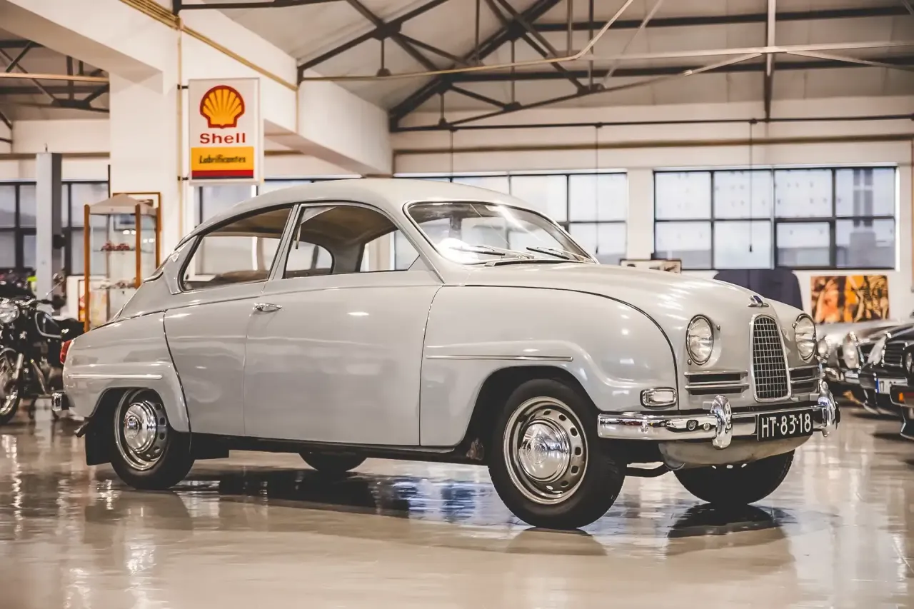 A SAAB – Svenska Aeroplan AB – iniciou funções como fabricante de aviões. O período de paz que se seguiu à Segunda Guerra Mundial fez a marca concentrar atenções na mobilidade terrestre, sobretudo nos automóveis. O primeiro Saab surge em 1949. Denominado ’92’ tinha como principal característica uma carroçaria muito aerodinâmica e estava equipado com um motor DKW a dois tempos. De forma a promover os seus veículos a marca sueca decidiu iniciar-se nos ralis no ano seguinte, no Rally de Montecarlo. Os Saab eram leves, ágeis e aerodinâmicos, o que, combinado com a tracção dianteira, levou muitos pilotos a escolher Saabs para enfrentar as classificativas do Mundial de Ralis. O mais famoso dos quais Erik Carlsson que, em conjunto com o também famoso Per Eklund, assinaram o capot deste Saab 96. O 96 foi apresentado em 1960 e, tal como o seu antecessor, era propulsionado por um motor três cilindros a dois tempos, que usava uma caixa manual de três velocidades para transmitir 57 Cv às rodas dianteiras. Erik Carlsson ganhou o Rally de Montecarlo, e dezenas de outras provas do Mundial de Ralis, com um 96 muito idêntico a este. Este Saab 96 foi vendido novo na Holanda em 1962 e nunca foi alvo de um restauro integral, o que comprova o bom trato que recebeu ao longo dos últimos 62 anos! Proveniente de uma colecção privada, dedicada à marca Saab, está quase completamente original, com poucos sinais de patina e sem qualquer ferrugem ou corrosão. O seu interior, num bonito contraste de tecido vermelho e pele cinzenta, está em excelente estado e destaca-se ainda o volante desportivo com aro em madeira. Tem montados pneus clássicos Firestone F-560, marca somente 91,000 km no quadrante e está pronto para desfrutar.